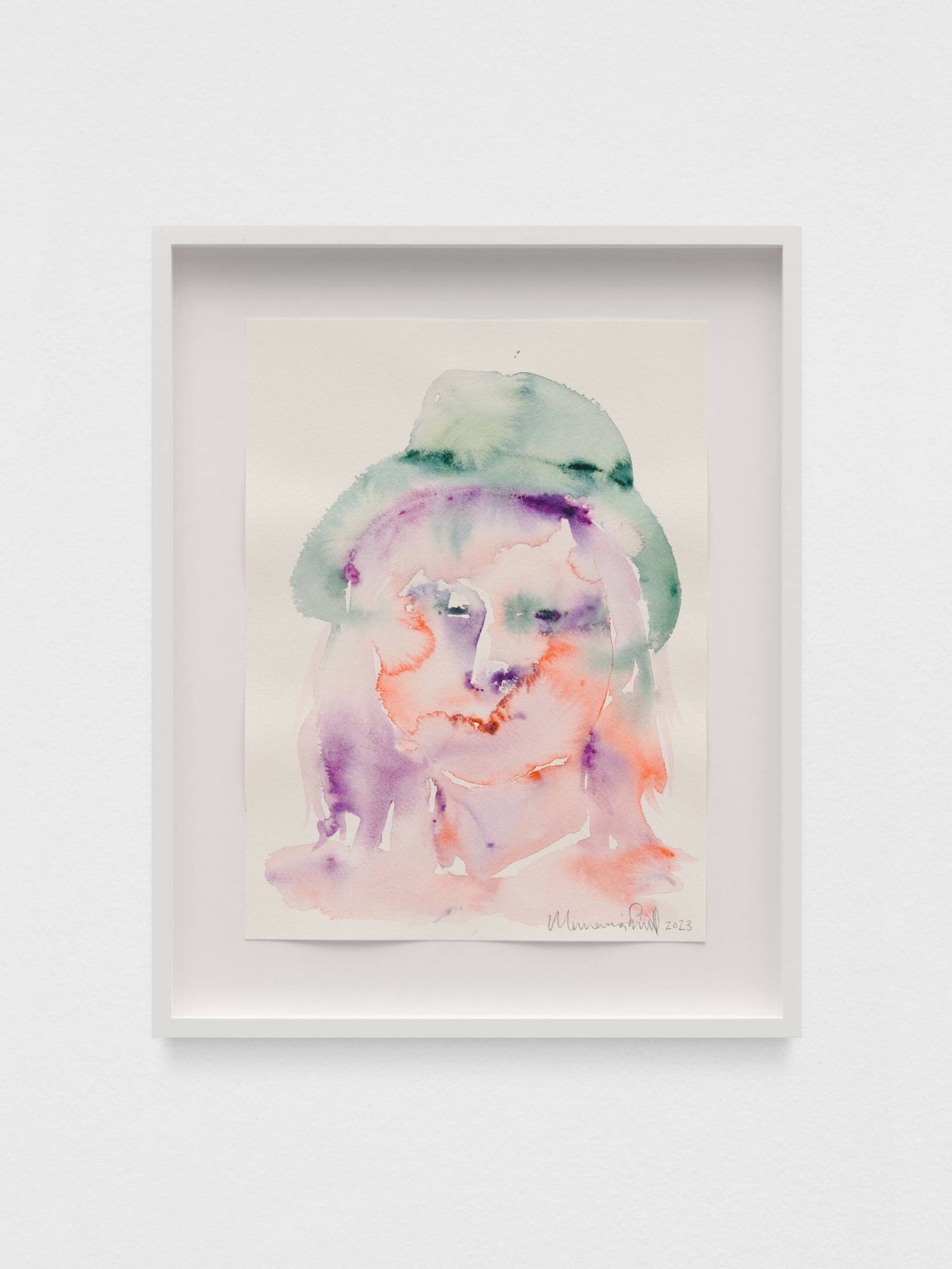 This series depicts one-to-one encounters linked by a stripped-back colour palette inspired by the shimmering purple-orange skies, green palms, and deep, sparkling, dreamy hues of Los Angeles, the city where they were created. Simnett used these intimate watercolour sessions as a way to get to know local artists and reconnect with friends.