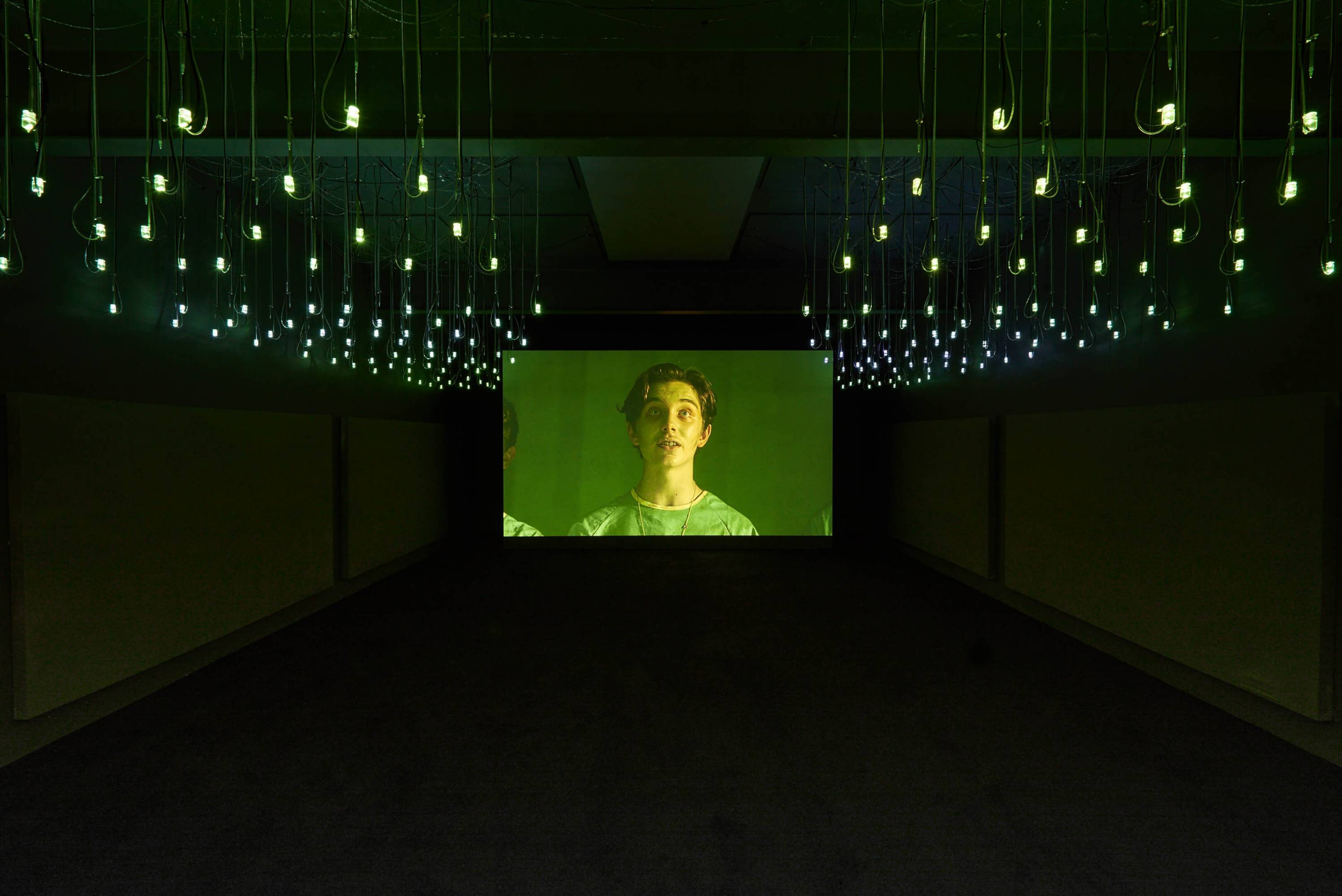 Worst Gift is set in an alternate world in which a voice surgeon (played by real-life surgeon and singer Dr Declan Costello) injects prepubescent boys with a substance to lower their voices. Shot in a Botox factory and theatrical surgery, the film follows a female protagonist (played by the artist) as she ventures on a mission to obtain the substance refused to her by the surgeon. Soundtracked by Marianna Simnett, Lucinda Chua and Leo Chadburn, Worst Gift combines elements of fairy tales and musicals to create an unsettling sound world, at once invitingly familiar and acutely unnerving. Punctuated by worm-curses, love songs, and dream visions, Worst Gift charts a hallucinatory journey of transformation. Commissioned by Matt’s Gallery.